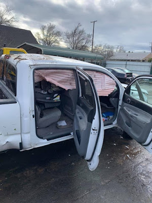 "On Friday, February 15, at 130pm my son Jerry was driving his family (Larissa and Colton 18 months old) to Oakhurst for the weekend. While going through Fresno on 41 north someone hit them and the force caused them to rollover one and 3/4 times landing on the right shoulder. They were taken to the hospital and left in a few hours the damage being in shock this happened. Thank God for His protection because it could have been worse."